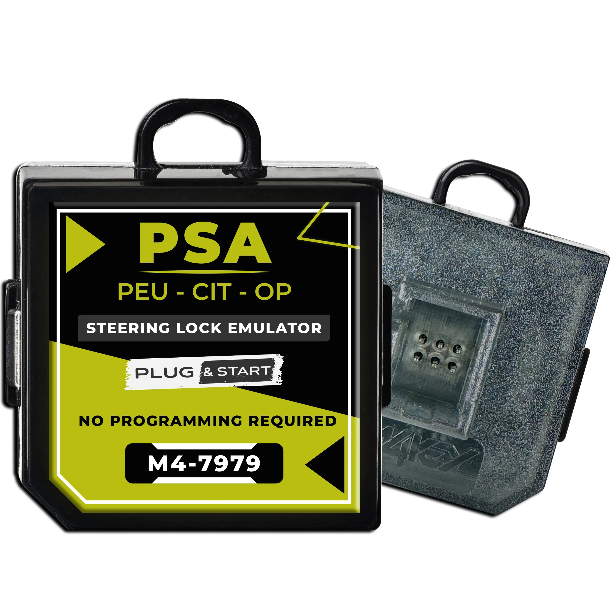 This emulator replaces the faulty Peugeot Citroen ESCL Units, it is compatible with PSA Cars With Electronic Steering Column Lock (ESCL), FT-CAN, 2011 And Up